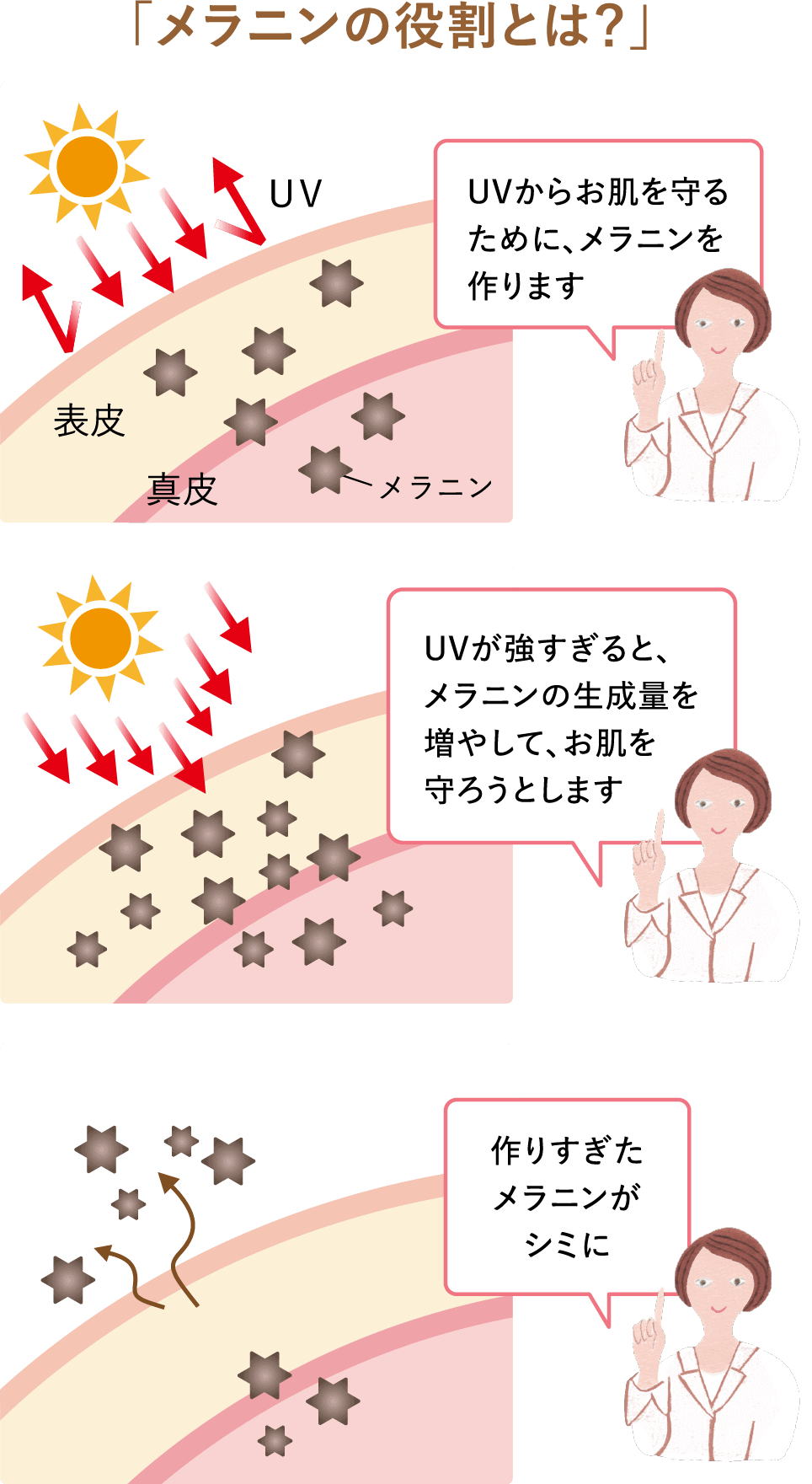 日に焼けてお肌が黒くなったり、角質が厚くなったり