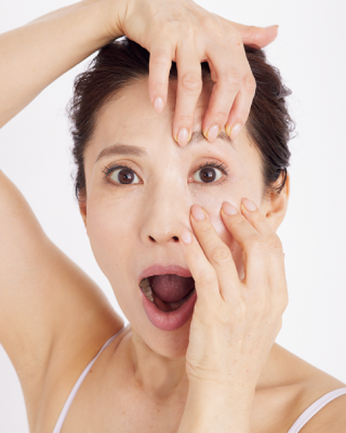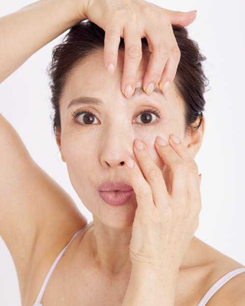 摩擦の刺激はシワ、シミ、くすみなどの原因になるので、皮膚の表面ではなく奥を動かすイメージで、「ずり圧」を意識してください。