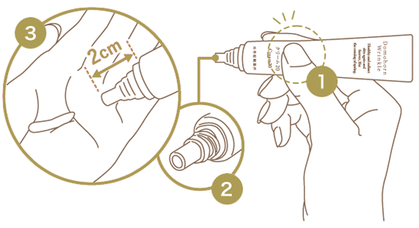 チューブの真ん中を優しくつまんで、手から少し浮かせた状態でスライドさせるとクリームが均一に出ます。