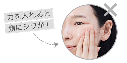 「奥までしっかりとぬり込みたい」という気持ちからついつい力が入りがちですが、顔の表情が変わるくらいに力を入れるとかえって刺激となり、シワやシミの原因になることがあります。