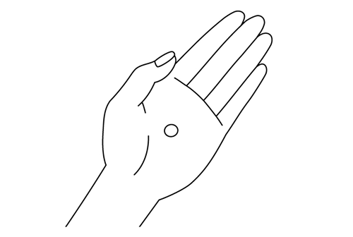 あずき1粒大を手のひらに取ります。