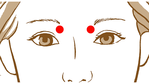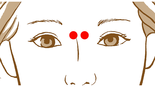 眉頭を軽く持ち上げるように押しましょう。