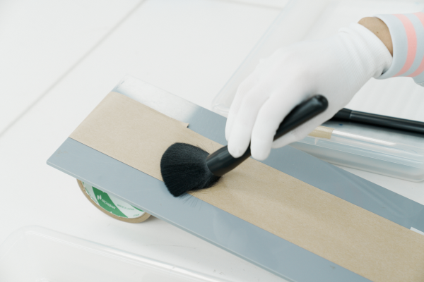 続いては、毛先と持ち手を接着剤を用いて固定していきます。