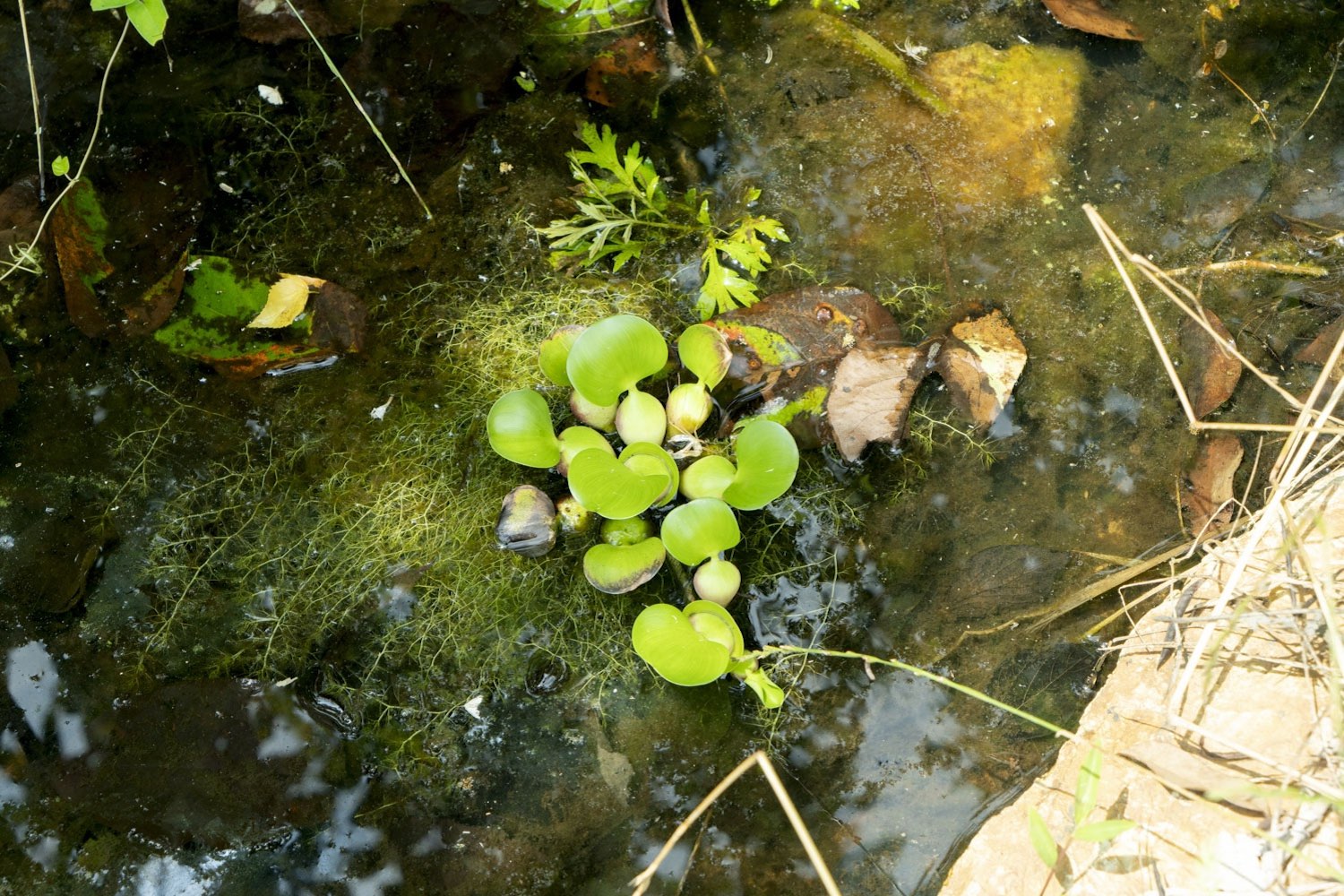 自ら穴を掘り、小さな九つの池を作成。現在、より適した土や深さを検討するため、雨水のたまり具合などを実験中とのこと。