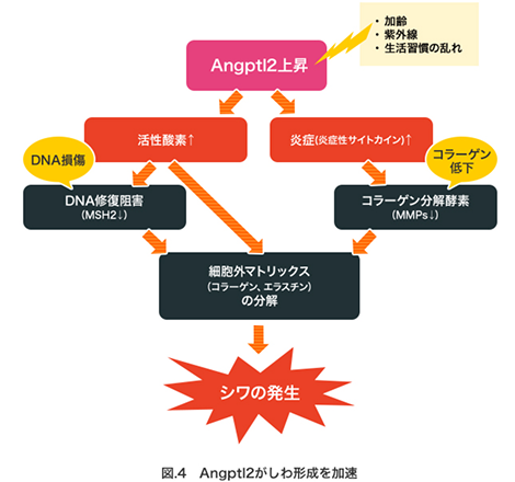 紫外線に浴びた肌や年齢肌ではAngptl2が多く作られています。