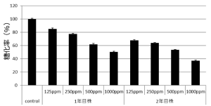 今回の実験では、「通常栽培:1年目初夏に収穫」したものと、「根株養生刈り取り栽培:2年目初夏に収穫」したものからそれぞれメタノール抽出物を作製し、試験を行いました。