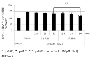 ※メラノーマ細胞にサンプル添加し、数日おいて細胞を回収、メラニン量/タンパク質量を評価