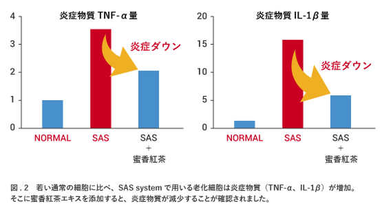 この蜜香紅茶の茶葉を再春館製薬所独自の評価法である「SAS system」で評価したところ、抗炎症効果があることがわかりました。