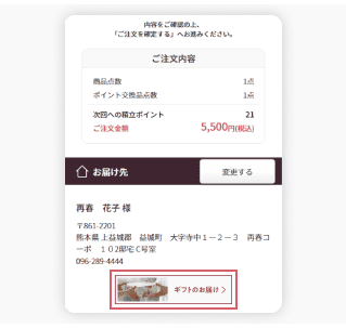 [ギフトのお届け]ボタンを押す -