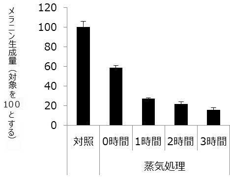 オタネニンジン根を各種条件にて蒸気処理を施して(121℃で1〜3時間)、エキスを作製して含有する成分を分析しました。その結果、蒸気処理時間が長くなるにつれてGinsenoside Rg3、Rg5などの成分量の増加が認められました。また、この処理によりメラニン抑制活性が上昇していることも培養細胞を用いた実験により確認しました。